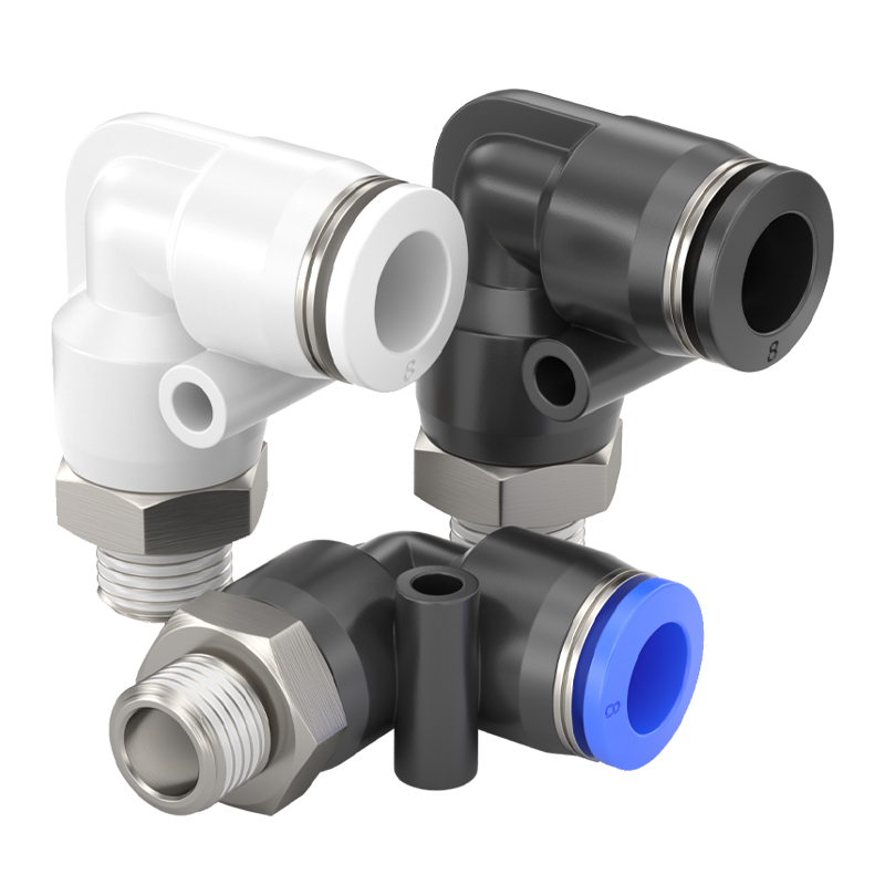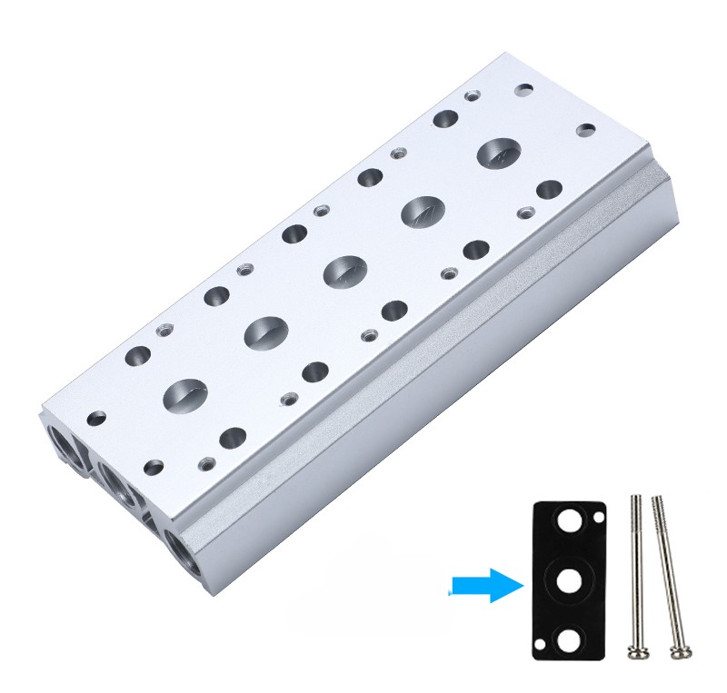 Susiję 4V200 serijos solenoidinių vožtuvų priedai: jungiamosios detalės ir kolektoriai