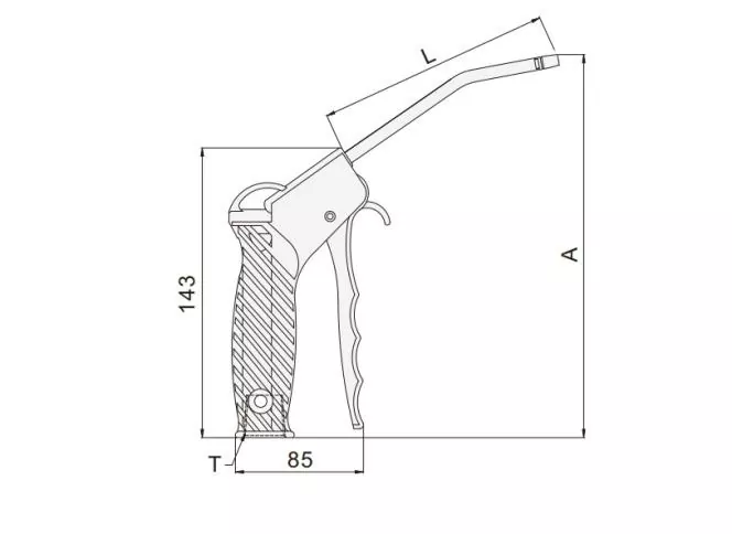 Oro smūgio pistoleto kontūro matmenų brėžinys ir specifikacija