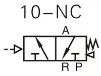 pavasario grįžimas Standartinis krypties valdymas: cilindras tęsiasi su signalu; automatiškai įsitraukia, kai signalas sustoja. |