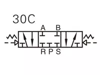 OLK oro valdymo vožtuvų veikimo principas (3A ir 4A serijos) (P = įėjimas A = B = išėjimas, R = S = išmetimas)