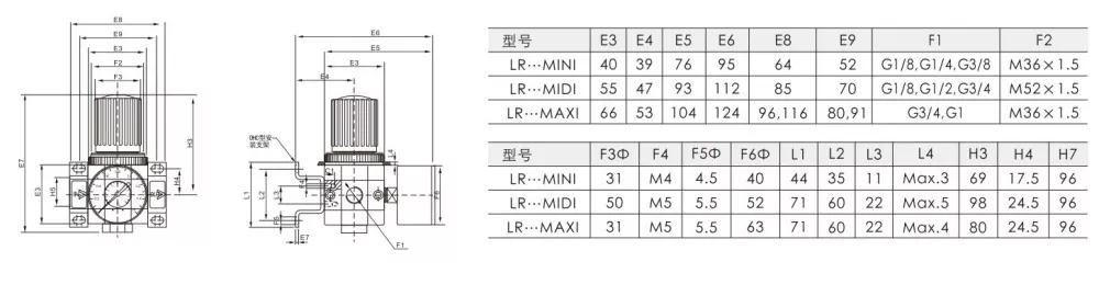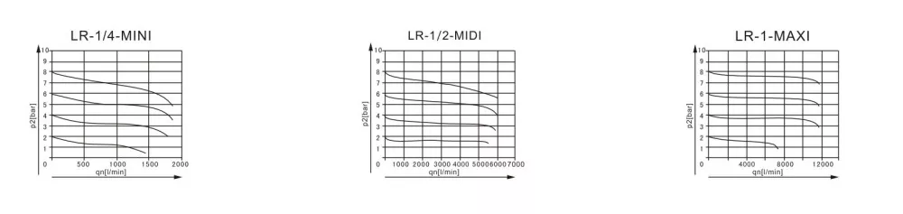 MINI/MIDI: diafragmos tipo slėgis Regulatormaxi: stūmoklio tipo slėgio reguliatorius