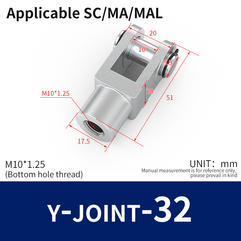 PNEUMATINIS 32 mm skersmens 25 mm eigos oro cilindras dvigubo veikimo su Y jungtimi ir 2 vnt 6 mm PC jungtimi MAL32x25