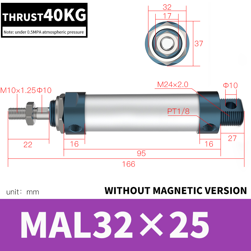 MAL serijos mini cilindras Standartinės specifikacijos: