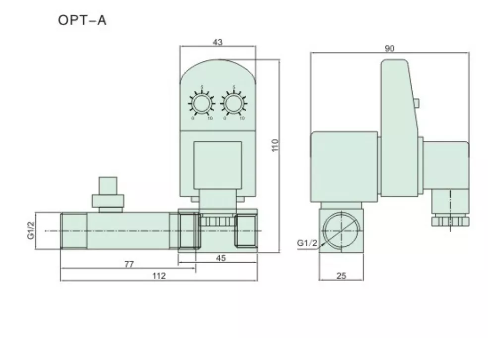 OLK OPT-A elektroninio laikmačio automatinio nutekėjimo padalijimo konstrukcija tinka siauroms montavimo erdvėms ir siūlo lanksčią montavimo kryptį. Srieginė pakelta dalis viduryje yra jungtis prie vožtuvo korpuso. Ilgesnė vožtuvo korpuso dalis yra įleidimo anga, o trumpesnė lygioji pusė yra išleidimo anga. Vožtuvas palaiko elektrinį iškrovimą ir rankinį perjungimą, užtikrinant dvigubą saugos apsaugą.