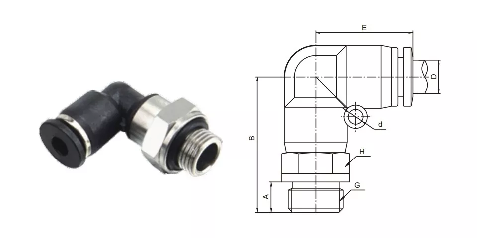 PL-G vyriškos lyties alkūnės stumimas į vamzdžių montavimą yra 90 laipsnių alkūnės jungtis ir G sriegis, idealiai tinkantis naudoti uždarose vietose arba ten, kur reikalingas vamzdžių peradresavimas. Su sandarinimo žiedais, kad būtų išvengta oro ar skysčio nuotėkio.