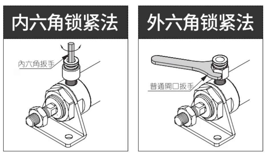 Naudokite „Allen“ raktą arba šešiakampį veržliaraktį, kad įsuktumėte į cilindro oro įleidimo/išleidimo siūlus, kaip parodyta paveikslėlyje. Norėdami gauti sugriežtinimą sukimo momentą, skaitykite paveiksle.