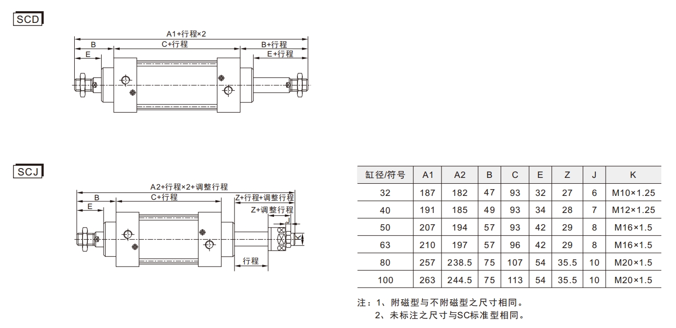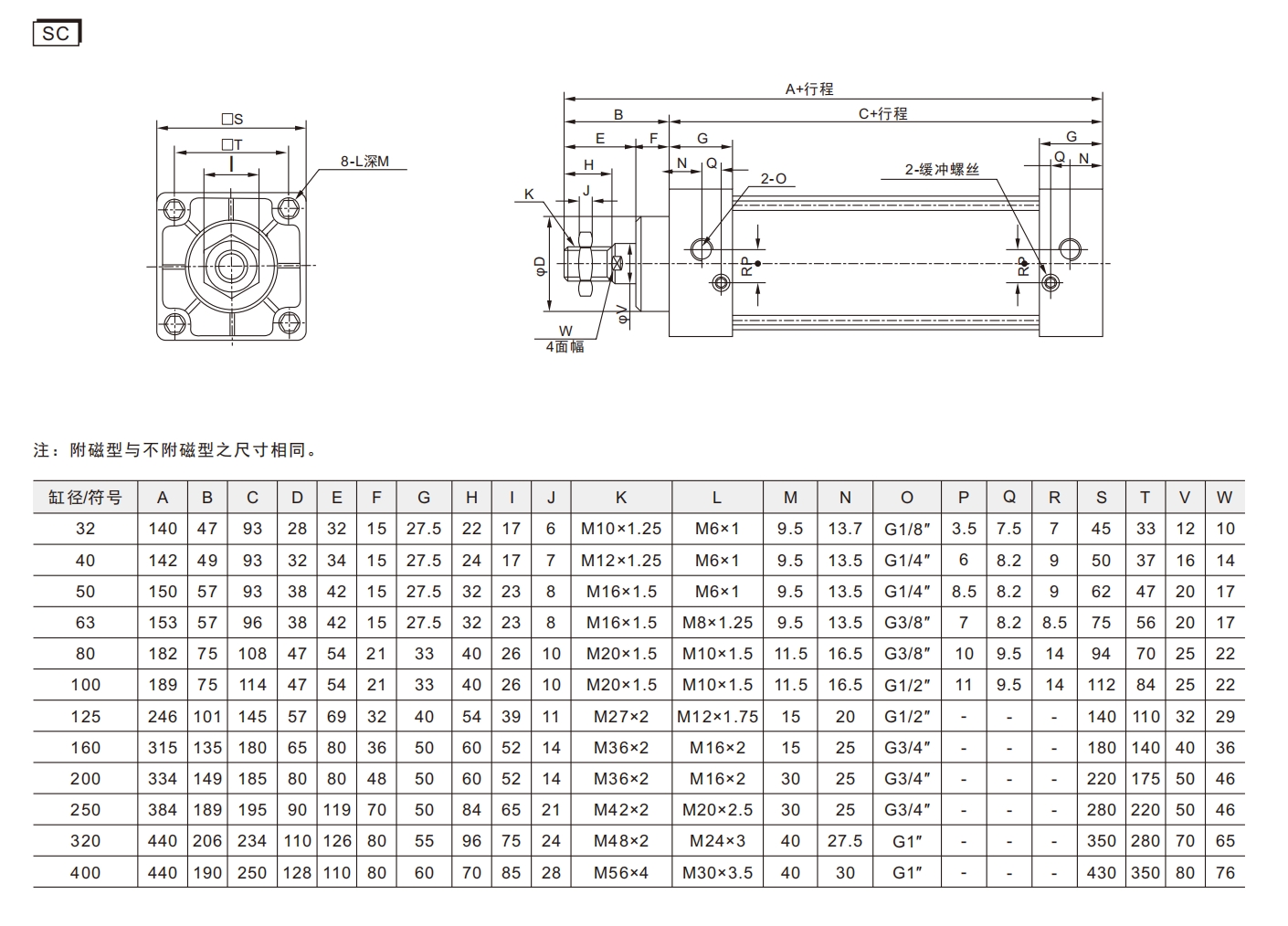 SC serijos standartinis cilindrasStandartinės specifikacijos parametrai: