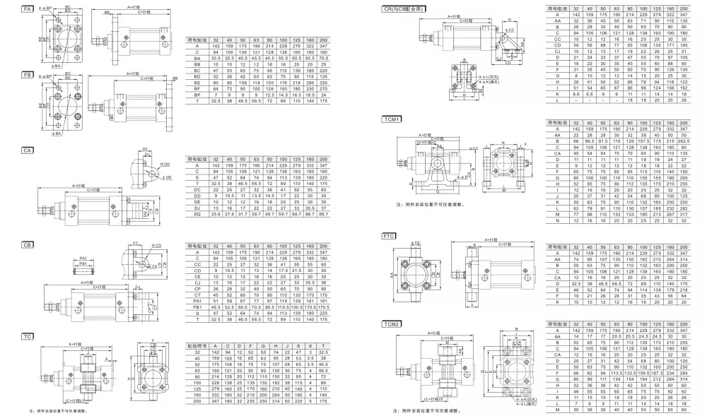 SU pneumatinio cilindro ir SI oro cilindro negalima keisti, o priedai (CA /CB pėdų laikikliai,FA flanšai,TC-M, jungties galvutės) nesuderinami