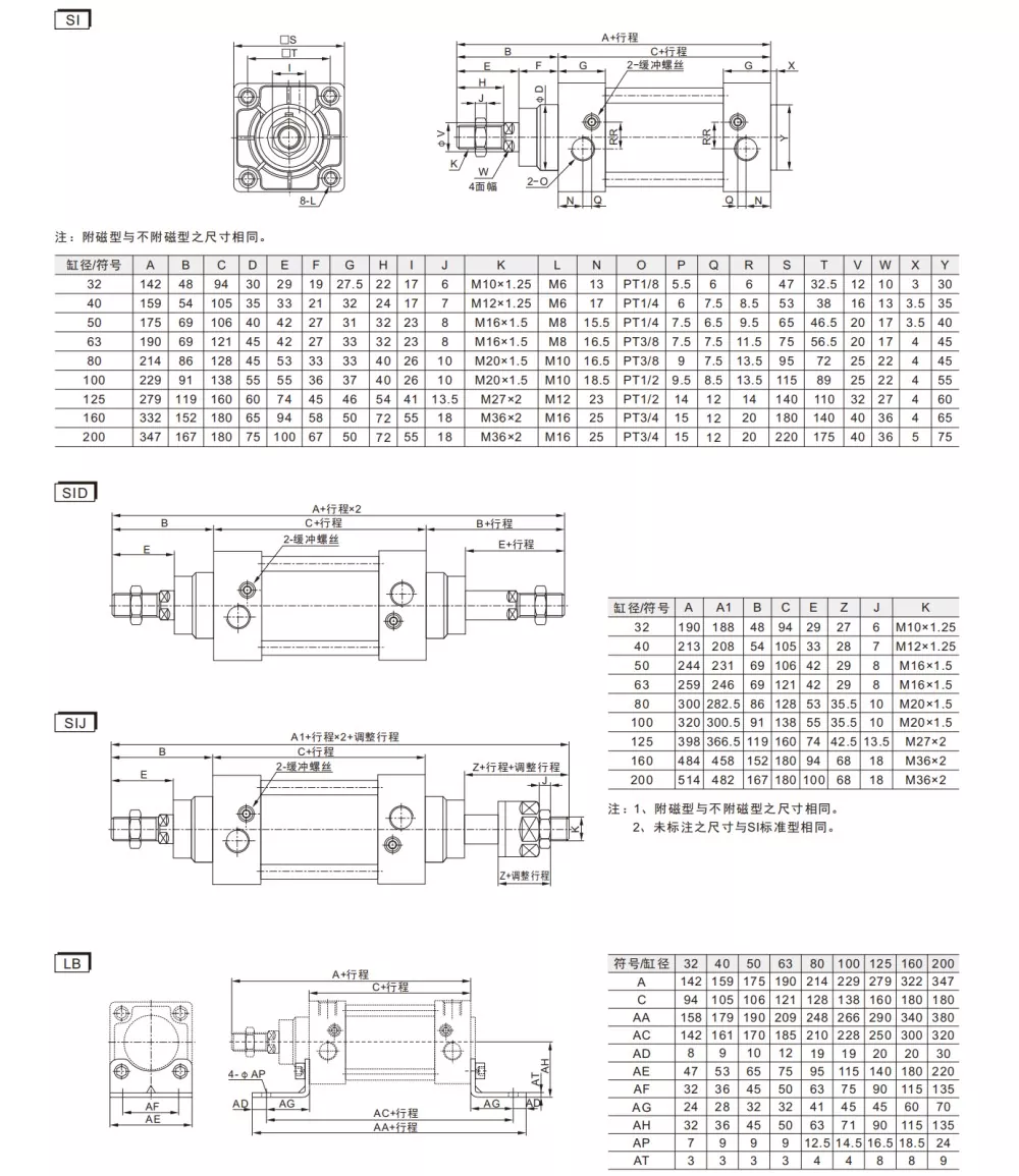 SI cilindrai gali pakeisti AIRTAC SI serijos cilindrus. Tačiau atkreipkite dėmesį, kad AIRTAC nutraukė SI seriją. Jų naujas pakaitinis modelis vadinamas SAI serijos pneumatiniu cilindru, kuris atlieka tą pačią funkciją ir tuos pačius montavimo matmenis.
