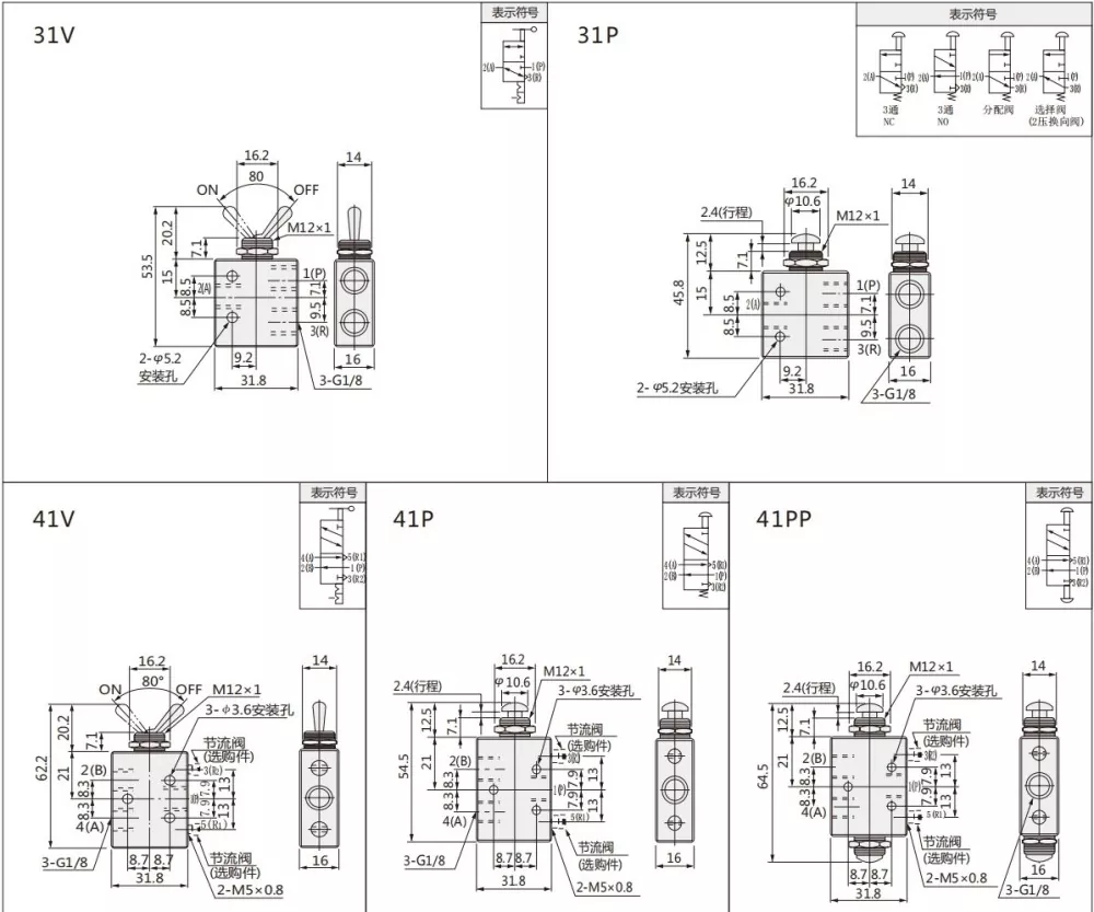 Tai gali būti atskirti perjungimo vožtuvą ir mechaninį vožtuvą pagal valdymo tipą: Perjungimo vožtuvas yra svirties laikymo tipas, mechaninis vožtuvas yra mygtuko mygtuko mygtuko arba ritinėlio tipas arba ritininis tipas