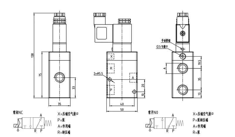 VU07 vakuuminis solenoidinis vožtuvas 3 kelio simbolis